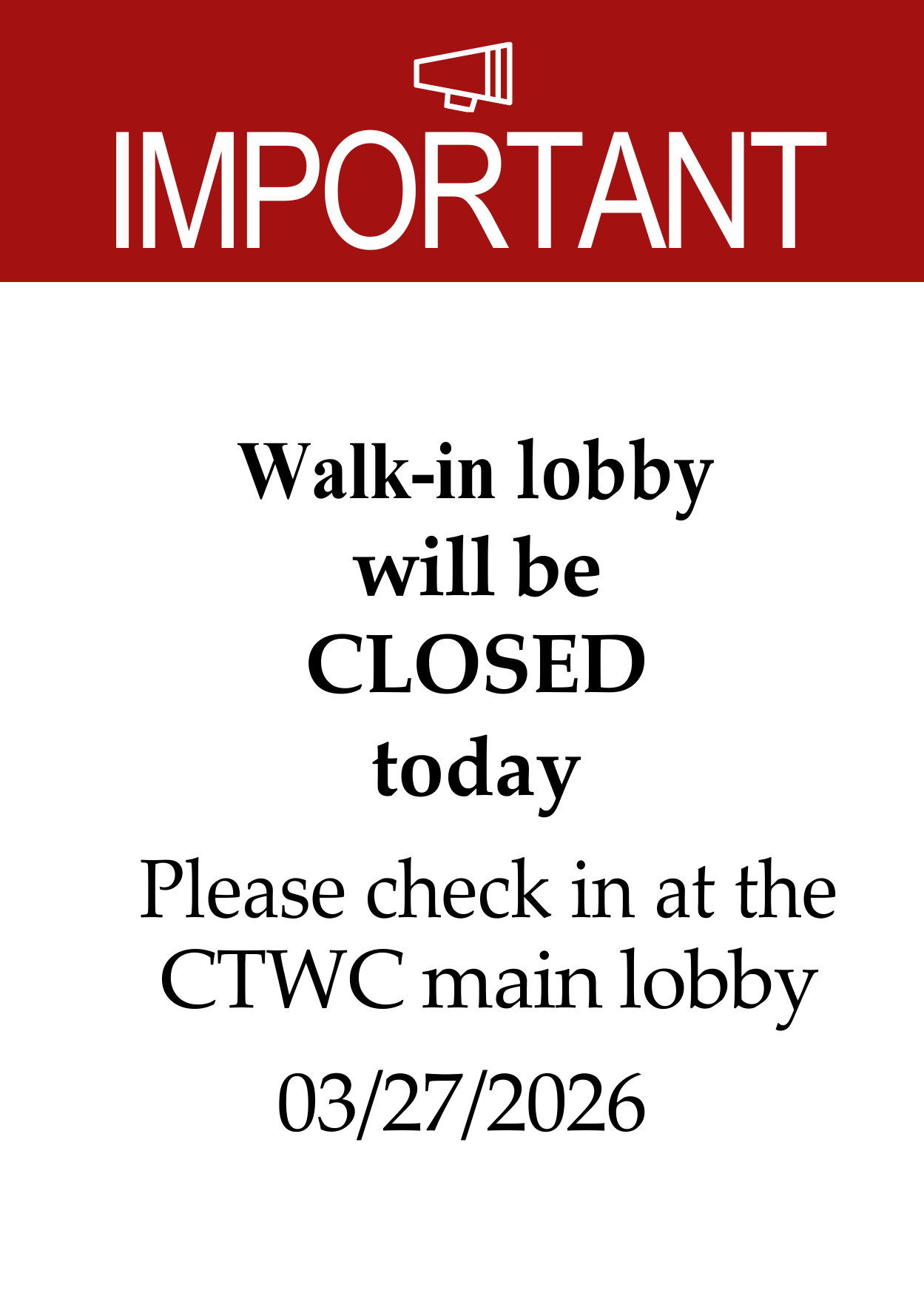 Lobby Closed Today!